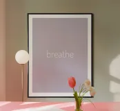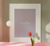 La primavera, un nuovo inizio, leggerezza, ottimismo, respirare... La parola "Breathe" su uno sfondo rosa tenue.