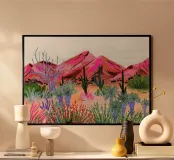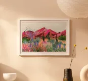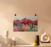 Sarah Gesek conferisce ai suoi paesaggi un'atmosfera da paese delle meraviglie ultraterreno con colori ricchi e porta mondi lontani nelle vostre case. L'artista di Seattle preferisce lavorare con colori acrilici su carta, ma anche con gouache, matite colorate, pastelli a cera e altro ancora. Ispirate dallo spettacolo naturale di rocce scoscese e giardini ondulati, notti stellate e cieli atmosferici, le opere di Sarah infondono un senso di vagabondaggio. Immergetevi, camminate e innamoratevi di nuovo del nostro mondo.
