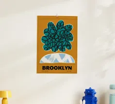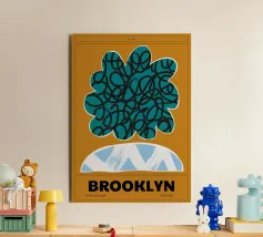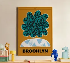 Produktbeschreibung: Ein modernes, abstraktes Design, das durch lebendige Farben und dynamische Formen besticht. Das aquablaue Element mit geschwungenen schwarzen Linien strahlt Energie aus, während das pastellblaue, halbkreisförmige Detail mit weißen Pinselstrichen einen handgemachten Charakter vermittelt. Der warme Orangeton im Hintergrund sorgt für Harmonie. Der Schriftzug "BROOKLYN" verleiht urbanen Flair. Details: Motiv: Abstrakte Formen mit grafischem Stil. Farbschema: Aquablau, Pastellblau, Schwarz und Orange.