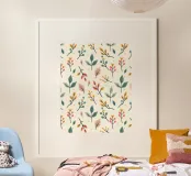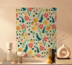 Portate un tocco di natura giocosa nel vostro spazio con questo simpatico motivo a foglie. I tenui colori pastello e i rami disegnati a mano creano un'atmosfera accogliente e fresca. Perfetto per aggiungere un po' di fascino botanico a qualsiasi stanza.