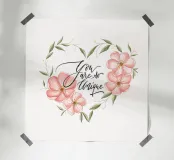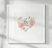 Cuore floreale e dichiarazione d'amore e di apprezzamento. Unico poster
