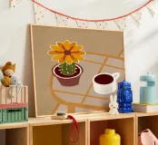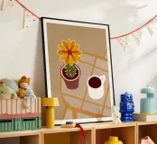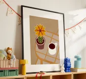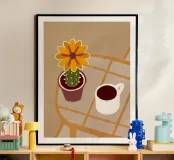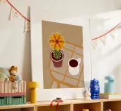 Cactus e caffè Retro Pop poster con telaio in plastica