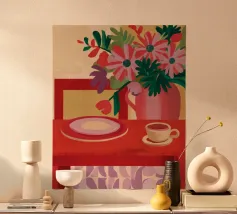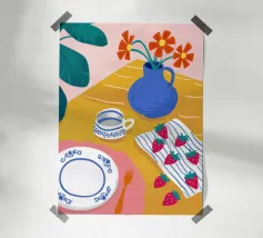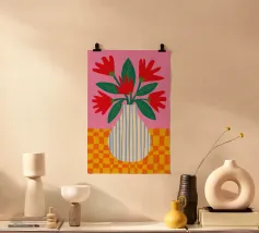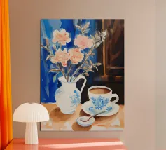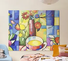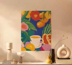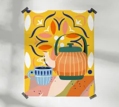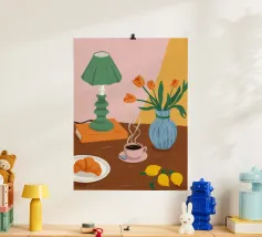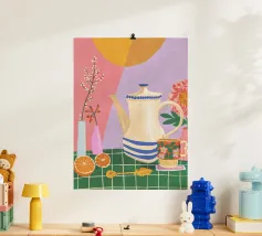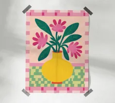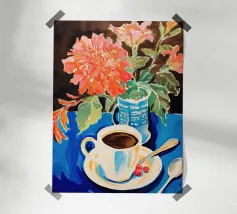 Caffè a scacchi in fiore poster
