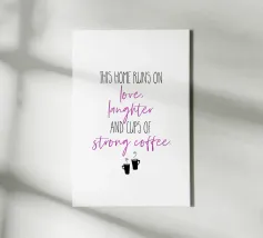 Questa casa funziona con l'amore, le risate e le tazze di caffè forte. Questa casa funziona con l'amore, le risate e le tazze di caffè forte. Design tipografico moderno.
