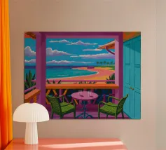 Porta l'atmosfera esotica nella tua cucina con il poster "Tropical Coffee". Questo design evocativo, caratterizzato da una vista paradisiaca e un personaggio rilassato, è perfetto per gli amanti del caffè e della natura. Realizzato con materiali di alta qualità, questo poster non solo decora, ma ispira momenti di tranquillità e piacere nella tua giornata.