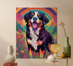 cane fiori margherite campo natura prato animale animale domestico all'aperto paesaggio cielo blu verde bianco rosa erba felice estate fioritura canino