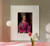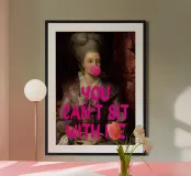 Fate una dichiarazione giocosamente esclusiva con "You Can't Sit With Me". Questa accattivante stampa pop art fonde magistralmente la ritrattistica classica, con una figura regale dall'elaborata acconciatura, con un tocco contemporaneo e umoristico. Una vivace bolla di gomma da masticare rosa è aggiunta giocosamente alle sue labbra, mentre il testo in grassetto rosa caldo "YOU CAN'T SIT WITH ME" sovrasta l'immagine, ispirandosi alla cultura iconica dei meme. È una miscela perfetta di eleganza senza tempo e arguzia moderna, ideale per aggiungere personalità e un tocco di spensierata esclusività a qualsiasi interno moderno. Realizzato con un eccezionale formato 7000x5000 p