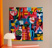 In "Geometric Chaos," dynamic shapes and vivid hues create an engaging and energetic composition. This painting explores the beauty of disorder and the excitement of artistic spontaneity.
