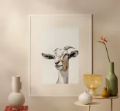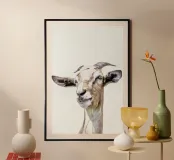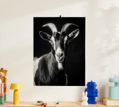 Questa incantevole fotografia raffigura un'adorabile capra, che cattura il suo fascino giocoso e la sua personalità unica. Perfetta per gli amanti delle capre e per gli appassionati di arredamento rustico, questa stampa di animali della fattoria aggiunge un tocco di decorazione ispirata alla natura a qualsiasi cameretta o stanza dei bambini.