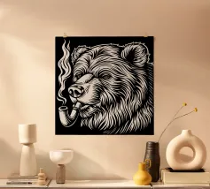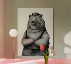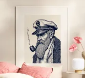 Poster del capitano in stile linoleografico con un marinaio barbuto che fuma la pipa. Un'audace arte da parete nautica in bianco e nero dal fascino vintage, perfetta per gli interni costieri, gli appassionati di mare e l'arredamento unico della casa.
