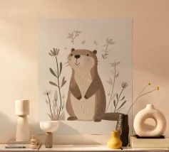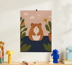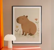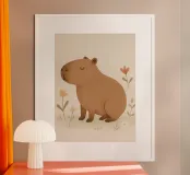 Una scena giocosa di capibara riuniti come piccoli all'asilo, che porta con sé umorismo e calore. I colori tenui e i dettagli affascinanti lo rendono perfetto per le camere dei bambini, le nursery o gli spazi ludici che celebrano la calma, la curiosità e l'unione.
