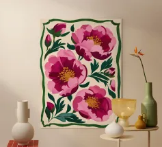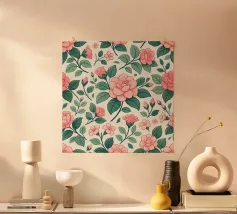 Un motivo ripetuto di garofani rosa brillante con petali stratificati offre un senso di nostalgia e fascino decorativo.