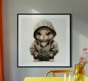 Cartone animato acquerellato con cincillà in felpa con cappuccio poster con telaio in plastica