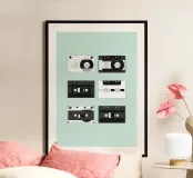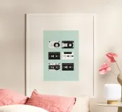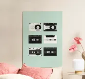 L'opera d'arte Cassette Pattern è visivamente dinamica. L'opera presenta un motivo ripetuto di cassette in tonalità verde. L'uso della tavolozza di colori verde pastello crea un senso di armonia in tutta l'opera d'arte, dando una sensazione di nostalgia.