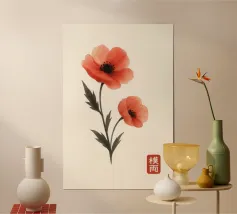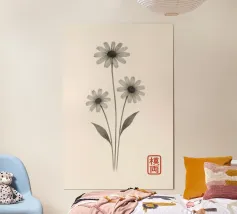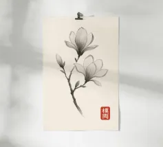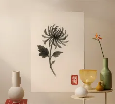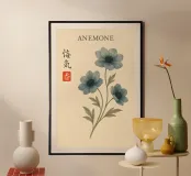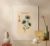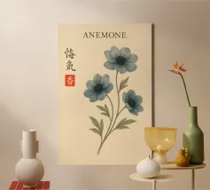 Morbidi fiori di anemone blu si dispiegano su esili steli su uno sfondo color crema, ogni petalo delineato da sottili linee botaniche e delicate ombreggiature ad acquerello. La calligrafia tradizionale scrive "ANEMONE" accanto a un sigillo vermiglio, fondendo l'accuratezza scientifica con un'arte senza tempo. Stampato su carta opaca di qualità museale, questo grazioso studio botanico arricchisce cucine, studi o pareti di gallerie illuminate dal sole, celebrando le delicate meraviglie della natura e conferendo una raffinata eleganza floreale a qualsiasi arredamento.