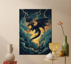 Solcando la tempesta e la luce, il Drago Celeste del Cielo ascende con ali di fuoco argentato. Guardiano dei cieli, porta con sé giudizio e rinnovamento in ogni battito d'ali.