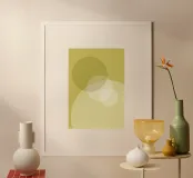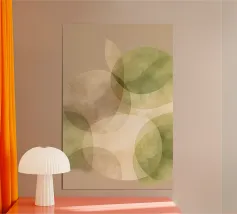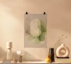 Una composizione minimalista costruita con forme morbide e sovrapposte e toni tenui. I delicati contrasti e gli strati trasparenti creano un'espressione calma ed equilibrata che invita l'occhio a riposare. Progettato per portare una tranquilla armonia negli interni moderni.