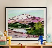 Sarah Gesek conferisce ai suoi paesaggi un'atmosfera da paese delle meraviglie ultraterreno con colori ricchi e porta mondi lontani nelle vostre case. L'artista di Seattle preferisce lavorare con colori acrilici su carta, ma anche con gouache, matite colorate, pastelli a cera e altro ancora. Ispirate dallo spettacolo naturale di rocce scoscese e giardini ondulati, notti stellate e cieli atmosferici, le opere di Sarah infondono un senso di vagabondaggio. Immergetevi, camminate e innamoratevi di nuovo del nostro mondo.