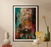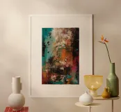 Un'esplosione astratta di texture e colori in cui turchese, arancione e cremisi si scontrano in pennellate energiche. Strati di schizzi, graffi e gocce creano un'intensità cruda, mentre dettagli sottili invitano a un'esplorazione più profonda. Quest'opera celebra il caos come forma di equilibrio e bellezza.