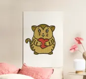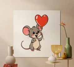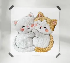 Come un ricamo, un simpatico gatto con un grande cuore rosso.