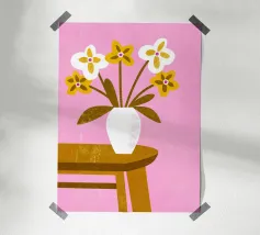 Ravvivate il vostro spazio con la nostra stampa d'arte floreale Vaso a scacchi! Questa colorata illustrazione di un vaso è un poster moderno con dettagliati disegni botanici. Perfetta come opera d'arte da parete minimale, aggiunge un fascino vibrante a qualsiasi arredamento. Ideale per chi cerca pezzi unici, vivaci e autentici per la casa.