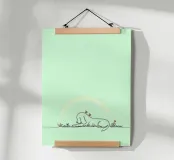 Cane che riposa in un campo di fiori Line Art minimalista poster con telaio in alluminio