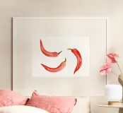 This watercolor chili artwork is a visually striking. The artwork features a realistic representation of a chili pepper rendered in vibrant watercolor hues. The artist (kathrinmay) has used different techniques to bring the chili pepper to life.