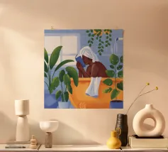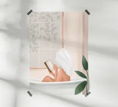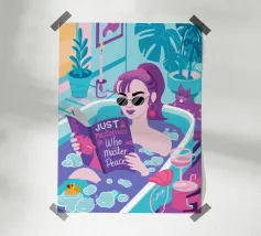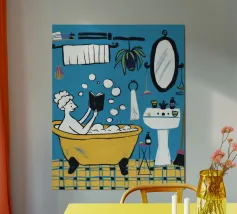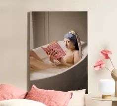 "Chillin time" è un pezzo che celebra quei momenti di tranquillità e divertimento nella vita di tutti i giorni. Ispirata all'iconico dipinto "La ragazza con l'orecchino di perla", questa elegante parodia aggiunge un tocco contemporaneo che sicuramente strapperà un sorriso, soprattutto alle donne. È un omaggio a quei momenti di relax e disconnessione, in cui non ci sono preoccupazioni o distrazioni maschili. Questo collage digitale è perfetto per decorare con stile qualsiasi bagno, aggiungendo un tocco di umorismo e raffinatezza al vostro spazio personale".