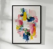 Le vivaci tonalità magenta, cobalto e oro si muovono liberamente sulla tela, evocando pura energia creativa. Un'opera d'arte astratta moderna per spazi che abbracciano il colore e la fiducia.