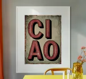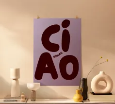 Salutate gli ospiti o date un tocco di classe al vostro spazio con la stampa "Ciao", elegante e raffinata. Un saluto italiano minimale e audace che si adatta a qualsiasi casa moderna.