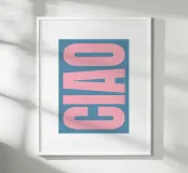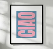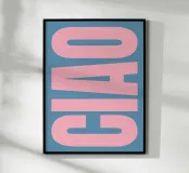 Poster Ciao dalle tonalità tenui del rosa e dell'azzurro, perfetto per creare un ambiente moderno e fresco in salotto, in corridoio o in ufficio.