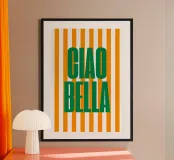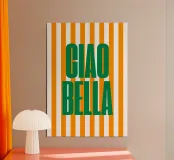 "Ciao Bella" – Bold and Bright Stripe Print poster con telaio in legno