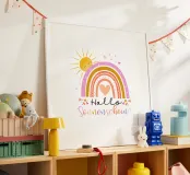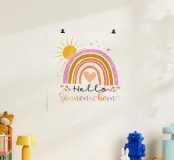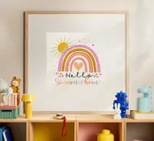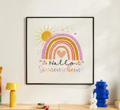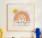 Ciao, sole. Simpatico arcobaleno in rosa. Per i bambini poster