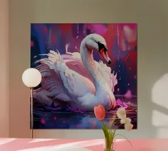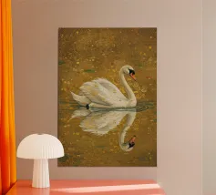 Questo dipinto a olio non raffigura semplicemente un cigno, ma cattura piuttosto un senso di eleganza e purezza. Il cigno scivola con grazia sul lago immobile, come una principessa di una fiaba. Le sfumature dorate dell'alba bagnano la superficie dell'acqua, creando un'atmosfera romantica e poetica. Il dipinto evoca un senso di serenità, di morbidezza e di sogno nell'osservare la bellezza della natura. Le sue piume bianche come la neve contrastano meravigliosamente con il blu del lago, componendo un'armoniosa sinfonia di colori ed emozioni.