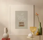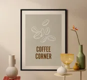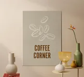 Sotto i chicchi di caffè, la scritta "COFFEE CORNER" (angolo del caffè) è evidenziata da una serie di leitters marroni.