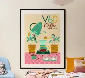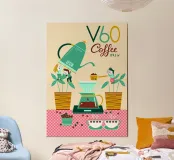 coffee filter pour-over v60 coffee kettle beans cups carafe plants serving measurement brewing scale liquid leaves pattern tablecloth wood texture typography animated characters