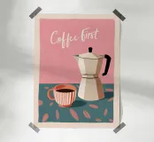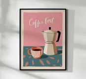 Porta un tocco di calore e carattere alla tua cucina con questa stampa artistica "Coffee First". Caratterizzata da un'affascinante illustrazione di una moka e di una tazza, è perfetta per gli amanti del caffè. Ideale per arredare la tua casa o come regalo speciale per ogni appassionato di caffè.