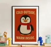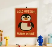 Se cerchi un tocco di calore per le tue giornate fredde, il poster "cold outside, warm inside" è perfetto! Con un adorabile pinguino pronto ad abbracciare l’inverno con un sorriso, questo design porterà allegria in ogni ambiente. Sia che tu voglia abbellire la tua casa, l’ufficio o prepararti per le festività, questo poster farà sicuramente colpo. Realizzato con colori vivaci e un design accattivante, è ideale per chi ama decorare con stile. Perfetto anche come regalo originale per amici e familiari!