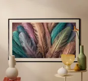 Collezione di piume colorate esposte in modo creativo poster con telaio in alluminio