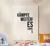 Questo design combina una tipografia dinamica con elementi visivi motivanti, creando un'opera d'arte piena di energia e un messaggio profondo.