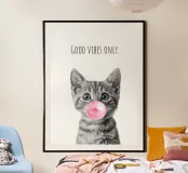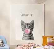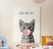 Questo gatto ha semplicemente tutto: fresco, elegante e con un tocco di coolness! Con la sua bolla di sapone rosa e il suo sguardo innocente, diffonde puro buonumore ed è il motivo perfetto per chiunque ami l'energia positiva e l'umorismo. Il design moderno e minimalista combina una sottile illustrazione in bianco e nero con un fresco accento rosa; semplice ma espressivo. Un must per i fan dei gatti, per gli amanti del design e per chiunque voglia farsi notare: casual, moderno e con un pizzico di umorismo.