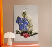 Gli effetti del riscaldamento globale non fanno ridere, ma a volte un approccio umoristico per mostrarne gli effetti può essere utile. L'orso polare è confuso dal suo nuovo regalo: una camicia hawaiana!