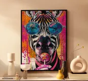 Zebra cool con lecca-lecca Pop Art poster con telaio in plastica