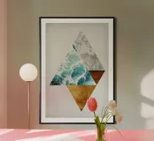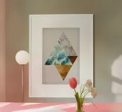 "Copper 01" combina forme geometriche e texture naturali: rame lucido, marmo calmo e strutture marine vibranti si fondono per creare un'opera d'arte moderna e minimalista. La chiara forma triangolare dona equilibrio e un tocco architettonico a qualsiasi ambiente. Ideale per interni moderni, case scandinave, uffici o spazi di lavoro creativi. Perfetto per gli amanti dell'arte geometrica, dei materiali misti, degli accenti in rame e del design contemporaneo da parete.