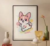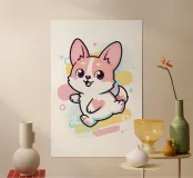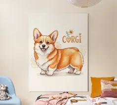 The funny little corgi delights all generations and radiates joie de vivre every day. Set off by subtle pastel colours.