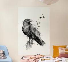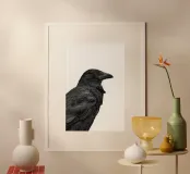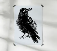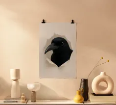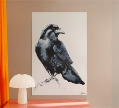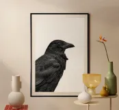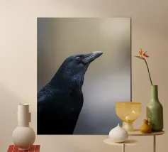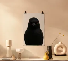 Questa stampa fotografica in bianco e nero mette in mostra i dettagli intricati delle piume e degli occhi penetranti del corvo. dedicata agli amanti degli uccelli e agli appassionati di arte ispirata alla natura, questa stampa unica del corvo aggiunge un tocco di raffinatezza e di intrigo al vostro spazio.