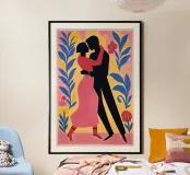Questo motivo cattura la magia di un momento di danza intima con colori vivaci e un chiaro linguaggio di design. Ispirato all'estetica dell'Art Déco e alla grafica stilizzata degli anni '50, la figura e l'ornamento si fondono in un'unità danzante. Gli elementi floreali incorniciano la scena come un palcoscenico per il romanticismo e la gioia di vivere, ideale per gli ambienti che devono emanare fascino e calore emotivo. Soprattutto, ovviamente, per chi ama ballare.