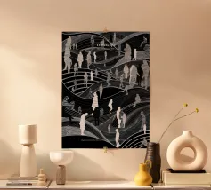 Questa opera d'arte dettagliata mostra una varietà di persone in diverse attività, amorevolmente raffigurate come delicati schizzi in bianco e nero. La composizione minimalista cattura la vita quotidiana e la diversità dell'interazione umana e si integra armoniosamente in qualsiasi ambiente. Perfetto per gli amanti dell'arte che apprezzano le opere sottili ma espressive.