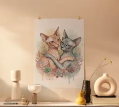 Un'illustrazione comica delle stranezze della pronuncia. Alcuni dicono Cut, altri dicono Cat, e tutto dipende dal divario tra nord e sud. Qui abbiamo il più peloso dei gatti, il Maine Coon, e il gatto meno peloso, il gatto sfinge, che si scontrano sul modo in cui la loro specie viene scambiata per il taglio delle forbici.