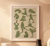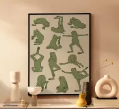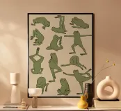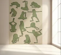 "Cute Frog Yoga" è un'opera d'arte umoristica e giocosa con adorabili rane che praticano diverse posizioni yoga. Con un design minimalista e un fascino spensierato, è perfetta per gli amanti dello yoga, per gli appassionati di animali o per chiunque ami l'arte stravagante. Questo pezzo porta divertimento, relax e un tocco di mindfulness in ogni spazio.